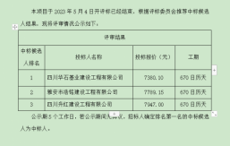 成雅工業(yè)園區(qū)百丈安置房二期項(xiàng)目鋼筋采購(gòu),根據(jù)有關(guān)法律、法規(guī)、規(guī)章的規(guī)定,于2023年4月21日經(jīng)雅安市名山區(qū)益業(yè)商貿(mào)有限公司競(jìng)爭(zhēng)性談判比選流程,評(píng)審工作已經(jīng)結(jié)束,成交人已經(jīng)確定,現(xiàn)將成交結(jié)果公示如下:成交單位名稱:四川霞成商貿(mào)有限公司成交價(jià):加成價(jià)30元/噸進(jìn)場(chǎng)時(shí)間:待甲方通知成交質(zhì)量要求:合格自成交結(jié)果公示之日起一個(gè)工作日內(nèi),對(duì)成交結(jié)果無(wú)異議的,采購(gòu)人將簽發(fā)成交通知書(shū),并在五個(gè)工作日內(nèi)簽訂合同。雅安市名山區(qū)益業(yè)商貿(mào)有限公司2023年4月23日...