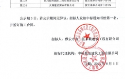 就雅安市名山區(qū)黑竹超限檢測站改造工程電子汽車衡招采,根據(jù)有關法律、法規(guī)、規(guī)章的規(guī)定,經(jīng)雅安市名山區(qū)茶城建設工程有限公司競爭性談判比選流程,評審工作已經(jīng)結束,中選人已經(jīng)確定,現(xiàn)將中選結果公示如下:中選單位名稱:重慶匯卓電子衡器有限公司中選價:279500元(大寫:貳拾柒萬玖仟伍佰元整人民幣)進場時間:待甲方通知中選質量要求:合格自中選結果公示之日起一個工作日內(nèi),對中選結果無異議的,采購人將簽發(fā)中選通知書,并在五個工作日內(nèi)簽訂合同。雅安市名山區(qū)茶城建設工程有限公司2021年10月29日...